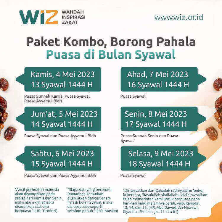 - Sebagai penyempurna amalan wajib: Seperti salat wajib yang diiringi dengan salat sunnah, puasa Ramadan juga diiringi dengan puasa sunnah. Puasa Syawal adalah bentuk penyempurnaan dari puasa Ramadan.