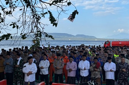 Banyuwangi (IMR) – Ratusan orang berkumpul di Dermaga Bulusan, Pelabuhan Ketapang, Kabupaten Banyuwangi, Jumat (11/7/2025) sore, untuk mengikuti salat gaib dan doa bersama bagi para korban kecelakaan laut KMP Tunu Pratama Jaya. Salat gaib tersebut menjadi momen haru dan penuh duka, diikuti oleh berbagai elemen masyarakat.