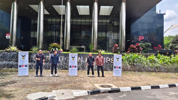 Lima aktivis Masyarakat Anti-Korupsi Indonesia (MAKI) mendatangi Gedung Merah Putih KPK, Selasa (24/3/2026), dan memasang banner satire sebagai “penghargaan” protes. Aksi ini menyoroti kebijakan KPK yang sempat diam-diam memberikan status tahanan rumah kepada tersangka korupsi kuota haji, mantan Menteri Agama Yaqut Cholil Qoumas (Gus Yaqut).