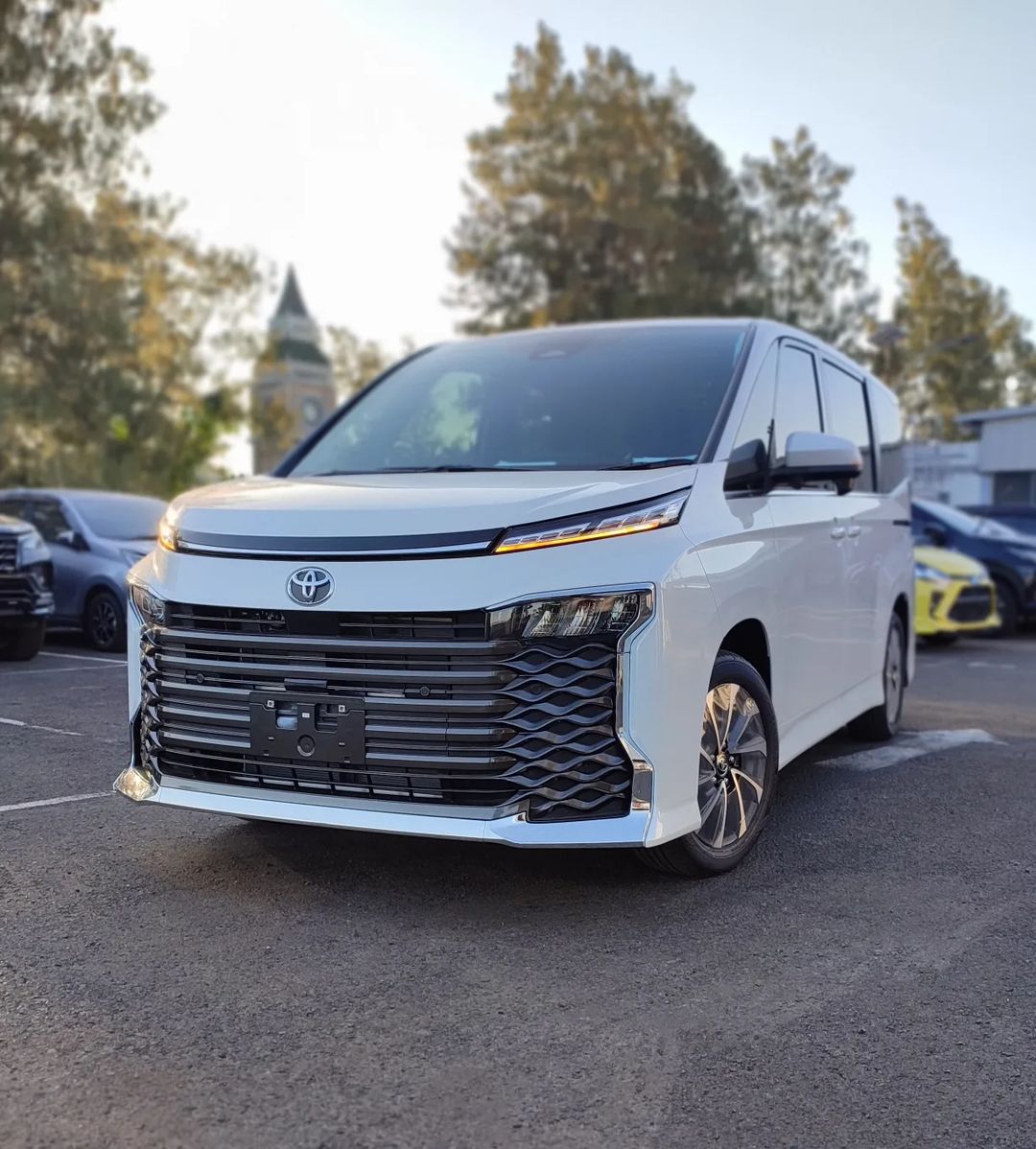 Toyota Voxy generasi terbaru hadir dengan tampilan yang jauh lebih segar dibanding model sebelumnya. Bagian depan didominasi grille besar dengan sentuhan krom yang memberi kesan mewah, dipadukan dengan lampu LED ramping yang memperkuat karakter modern.