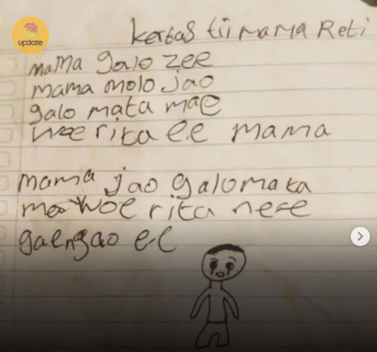 Tragedi ini semakin memilukan setelah aparat Polres Ngada menemukan secarik kertas berisi surat wasiat tulisan tangan YBS menggunakan bahasa daerah setempat. Surat tersebut ditujukan kepada ibunya, berisi pesan agar sang ibu tidak menangis dan merelakan kepergiannya. Di bagian akhir surat, terdapat gambar sederhana menyerupai emoji wajah menangis.